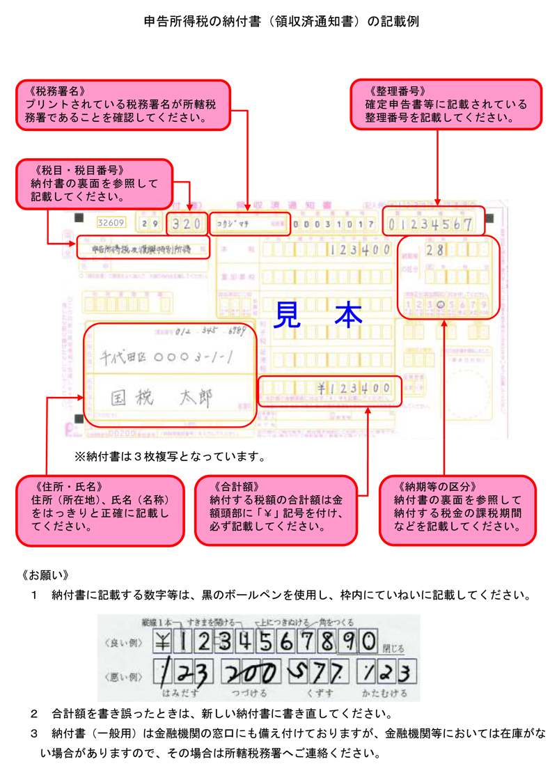 作成した納付書と現金を以下の窓口に持参し、一括で納付します。